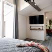 La suite padronale è una vera e propria oasi di intimità, con un letto king size che domina l’ambiente e un bagno interno che definisce il concetto di lusso. Le tappezzerie e i rivestimenti pregiati si estendono anche nel bagno, dotato di una doccia emozionale con cromoterapia per un’esperienza di benessere senza pari. La stanza affaccia su una balconata fiorita, che invita a godere della vista panoramica e della tranquillità che solo il quarto piano può offrire.