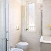 La seconda camera matrimoniale ha anch’essa un letto matrimoniale ed è servita dal bagno adiacente con finestra completo di doccia e bidet.