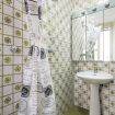 Il secondo bagno, quello più piccolo di colore verde, è interno alla camera singola. La doccia non ha il piatto doccia ed il box doccia ma ha un tenda in plastica e ha lo scarico a pavimento.